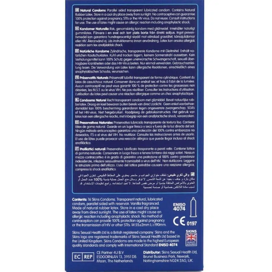 El Skins Natural 16-Pack está diseñado para ofrecer una calidad y un valor premium, ofreciendo un formato listo para usar con hasta un 33 % más de condones por paquete que el líder del mercado. Ideal para minoristas que buscan un producto esencial confiable y de gran éxito que combine discreción, comodidad y calidad. Fabricados con látex natural de alta calidad, los condones Skins Natural son transparentes, resistentes y ultrafinos, ofreciendo una sensación similar a la de la piel. Ligeramente infusionados con vainilla, eliminan el olor típico del látex, mejorando la comodidad y la confianza del usuario.